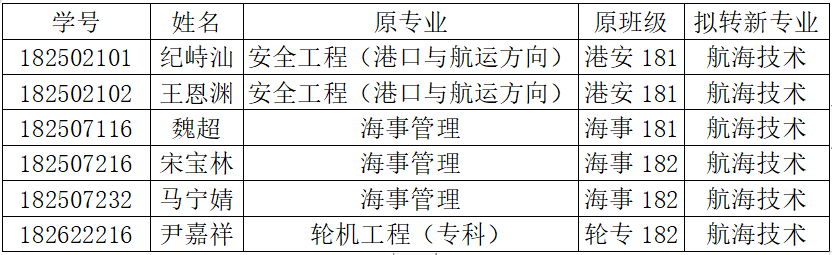 2018级申请转入航海学院学生名单公示